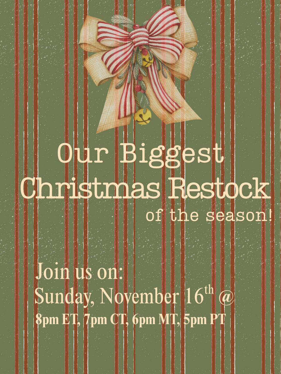 Next Sale: Christmas Restock: Sunday, Nov. 16th @ 8pm ET/5pm PT